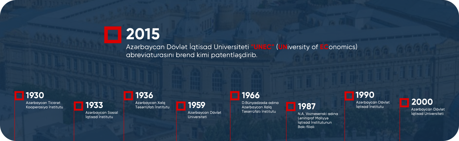 Azərbaycan Respublikası Prezidentinin 349 saylı fərmanı ilə Azərbaycan Dövlət İqtisad İnstitutu və Bakı Əmtəəşünaslıq İnstitutunun bazasında yeni ali məktəb -Azərbaycan Dövlət İqtisad Universiteti yaradıldı. Beləliklə, 1930-cu ildə əsası qoyulmuş universitetimiz kiçik bir fakültədən bu gün Azərbaycanın ən aparıcı müəssisələrindən biri olaraq Qafqazın ən böyük ali iqtisad təhsil ocaqlarından birinə çevrilmişdir. Azərbaycan Dövlət İqtisad Universitetinin həyatında yadda qalan hadisələrdən ən önəmlisi Ulu Öndər Heydər Əliyevin universitetə gəlişi olmuşdur. 2002-ci ilin iyun ayının 13-də o zaman Azərbaycan Respublikasının Prezidenti Heydər Əliyevin İqtisad Universitetinin 70 illik yubiley mərasimində iştirakı çoxminli kollektivimizin xatirində əbədiyaşar hadisəyə çevrildi. Heydər Əliyevin dövlətçilik fəaliyyətində Azərbaycan elminə, təhsilinə, fədakar alimlərə və müəllimlərə qayğı və diqqəti xüsusi yer tutmuşdur.