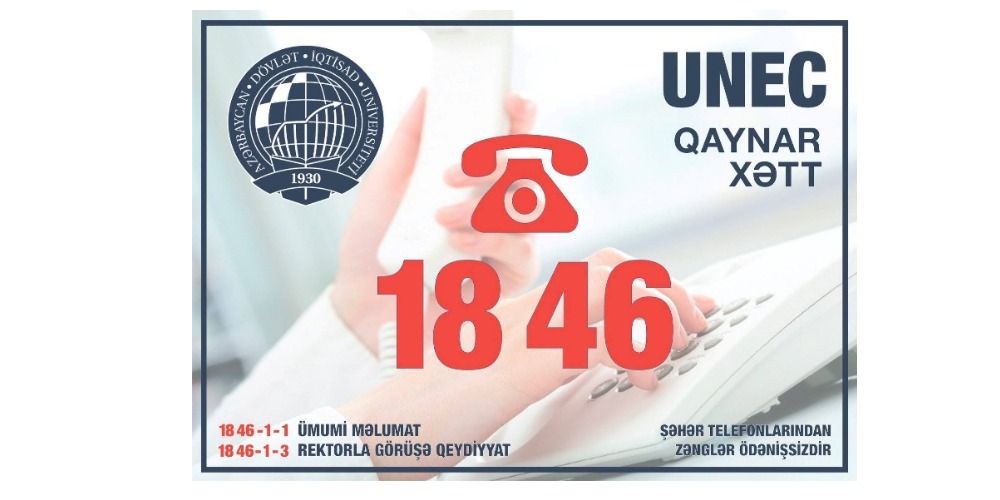 UNEC-də təkliflərin dinlənilməsi, şikayətlərin operativ araşdırılması və rektorun qəbuluna qeydiyyata alınmaq üçün “Qaynar xətt” xidməti fəaliyyət göstərir.