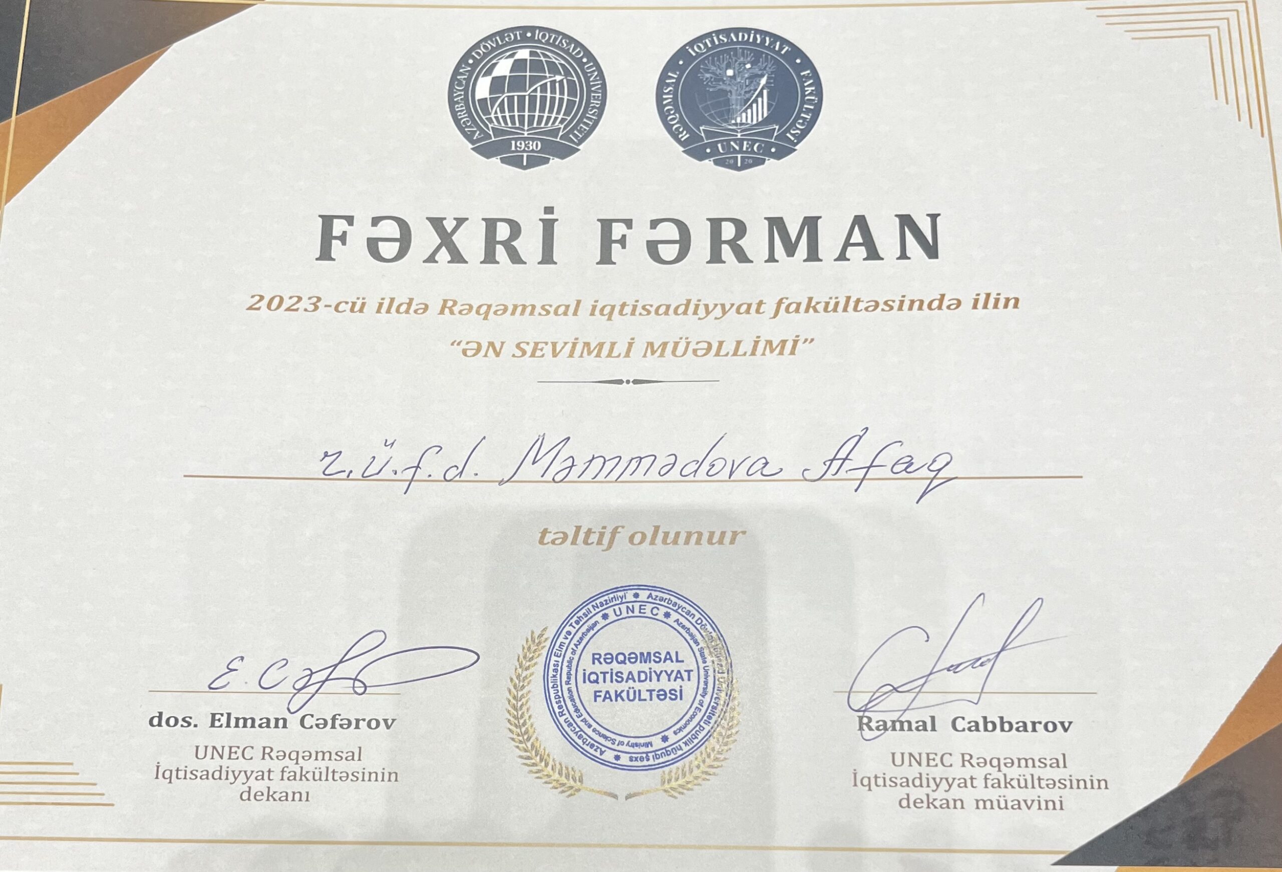 «Riyaziyyat və statistika» kafedrasının dosenti