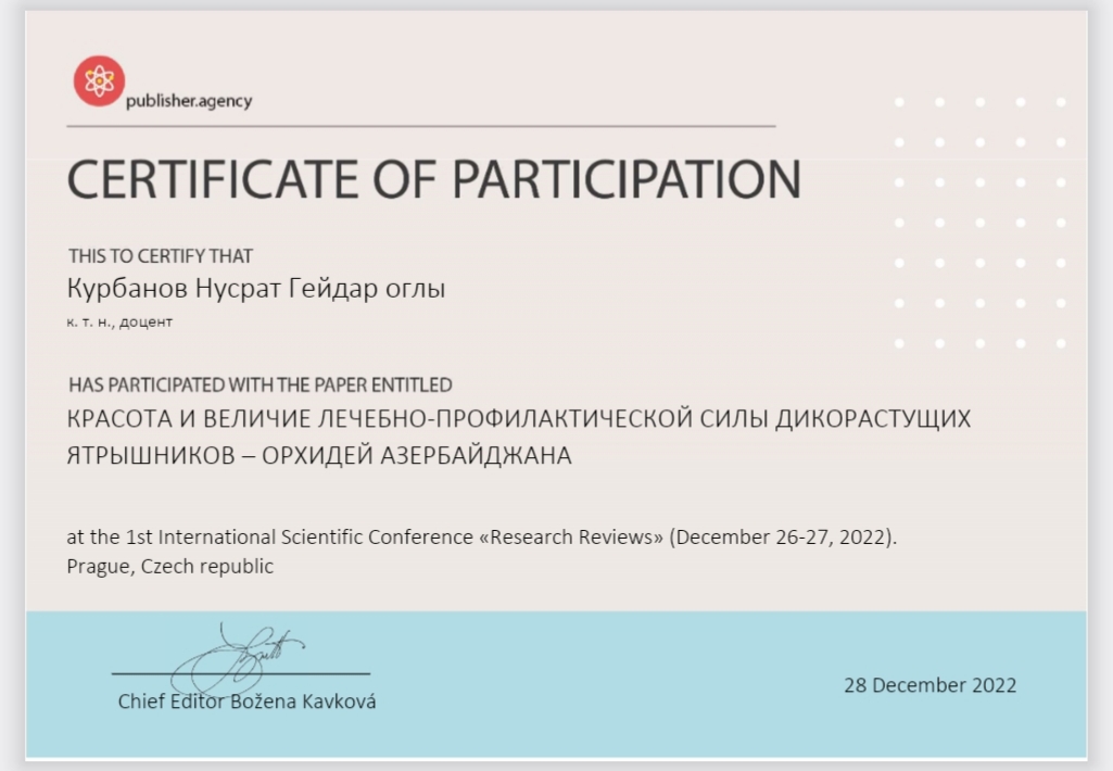 2003-cü ildə Berlin Texniki Universitetinin Qida məhsullarının texnologiyası və qida kimyası institutunda beynəlxalq DAAD təşkilatının qrantı ilə tədqiqatlar aparmış, nar cecəsində pektin maddələrinin tədqiqi, səhləbdən (orxideya) alınan salepin tədqiqi və nar yağının alınması və s. üzrə elmi tədqiqatlar aparmışdır.